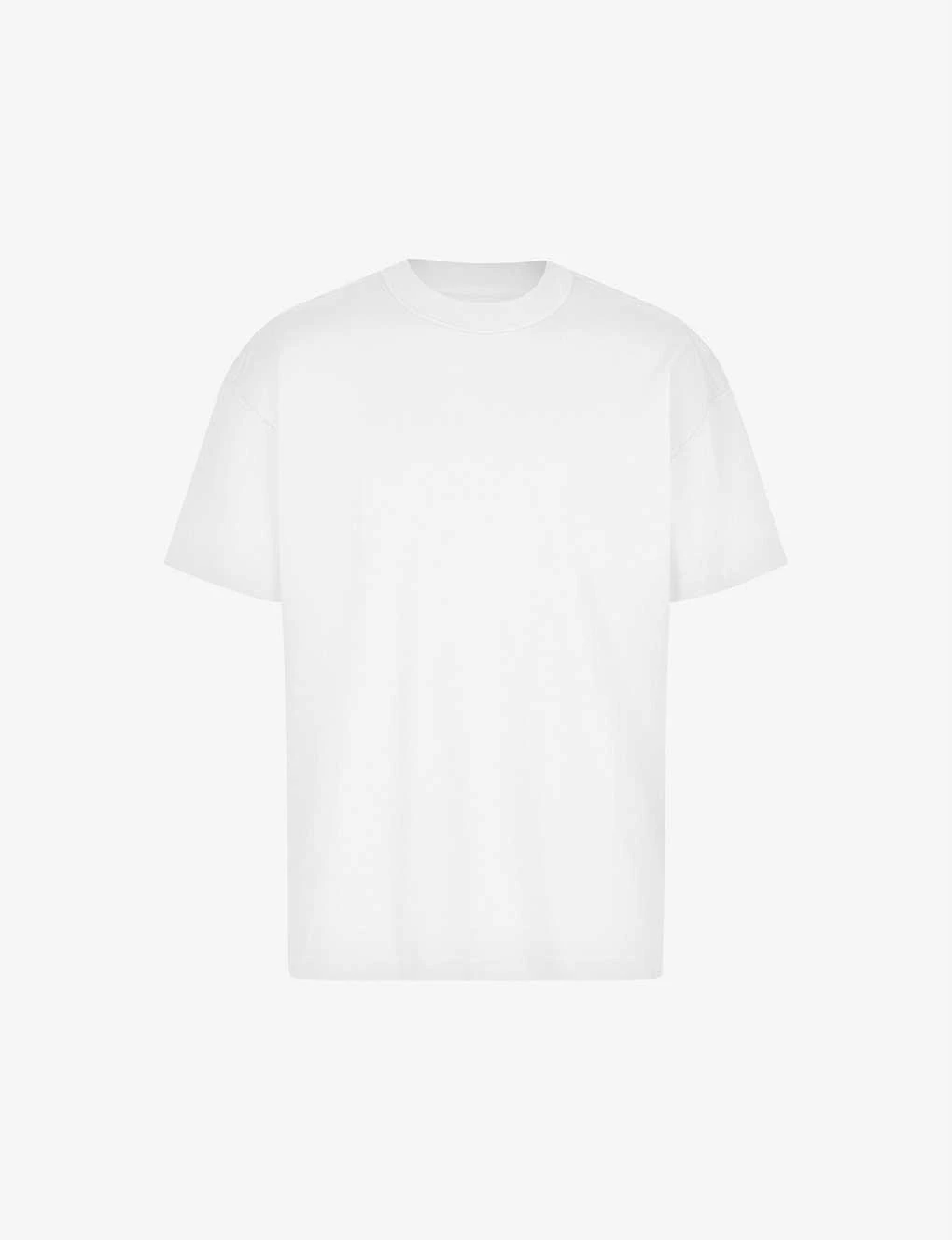 - Oversized fit, ribbed neckline, crewneck, short sleeves, overlock seams on sleeves and neckline