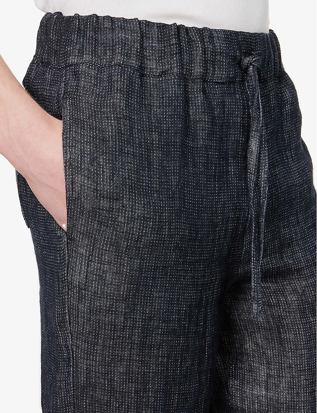 - Regular fit, mid-rise, straight leg, elasticated drawstring waistband, two slip pockets at sides, patch pocket at back, speckled weave, partially lined