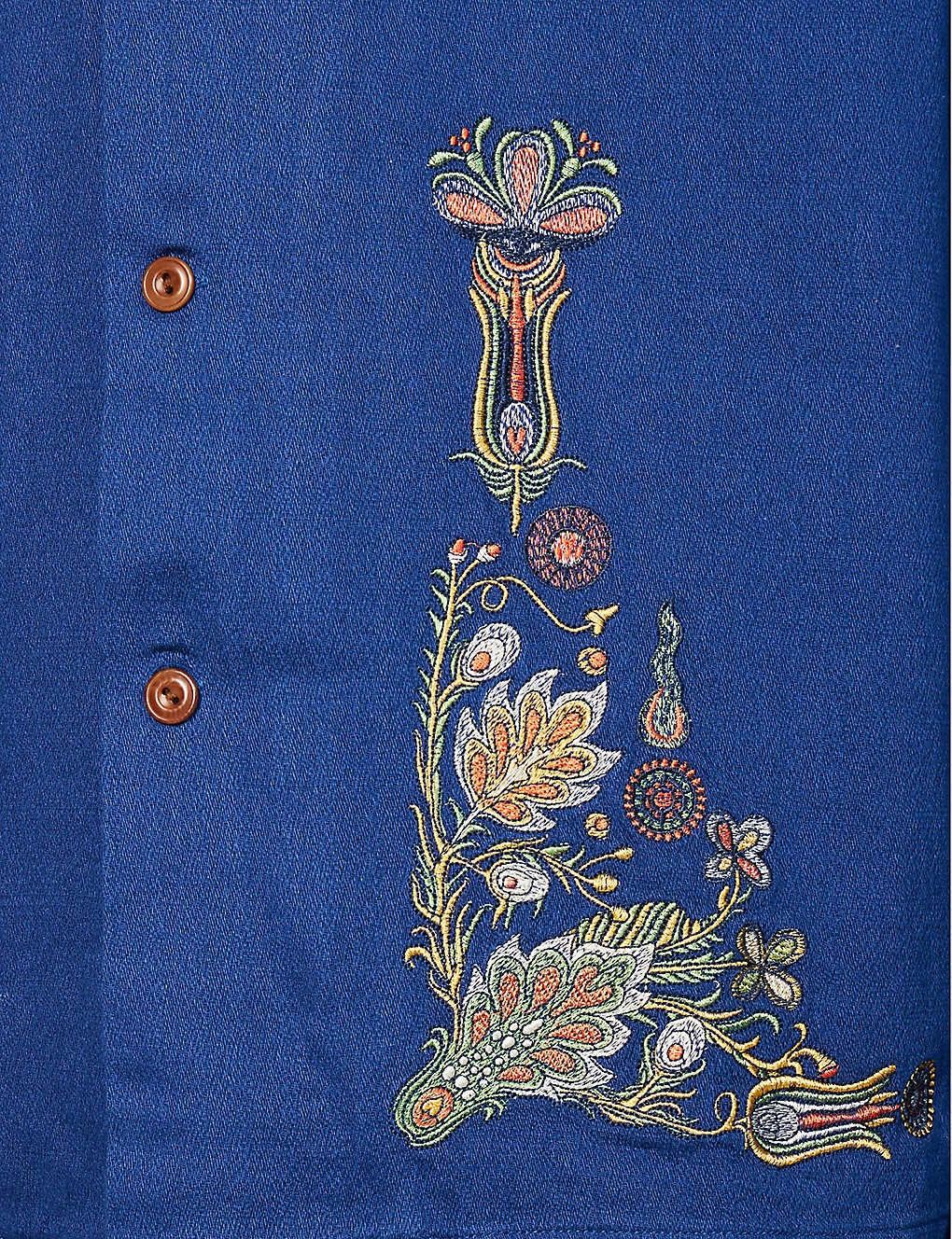 - Regular fit, collar, long sleeves, two patch pockets and floral embroidery at front, straight yoke at back, textured, straight hem