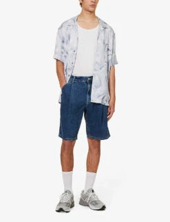 - Exposed button and concealed zip-fly fastening at front
