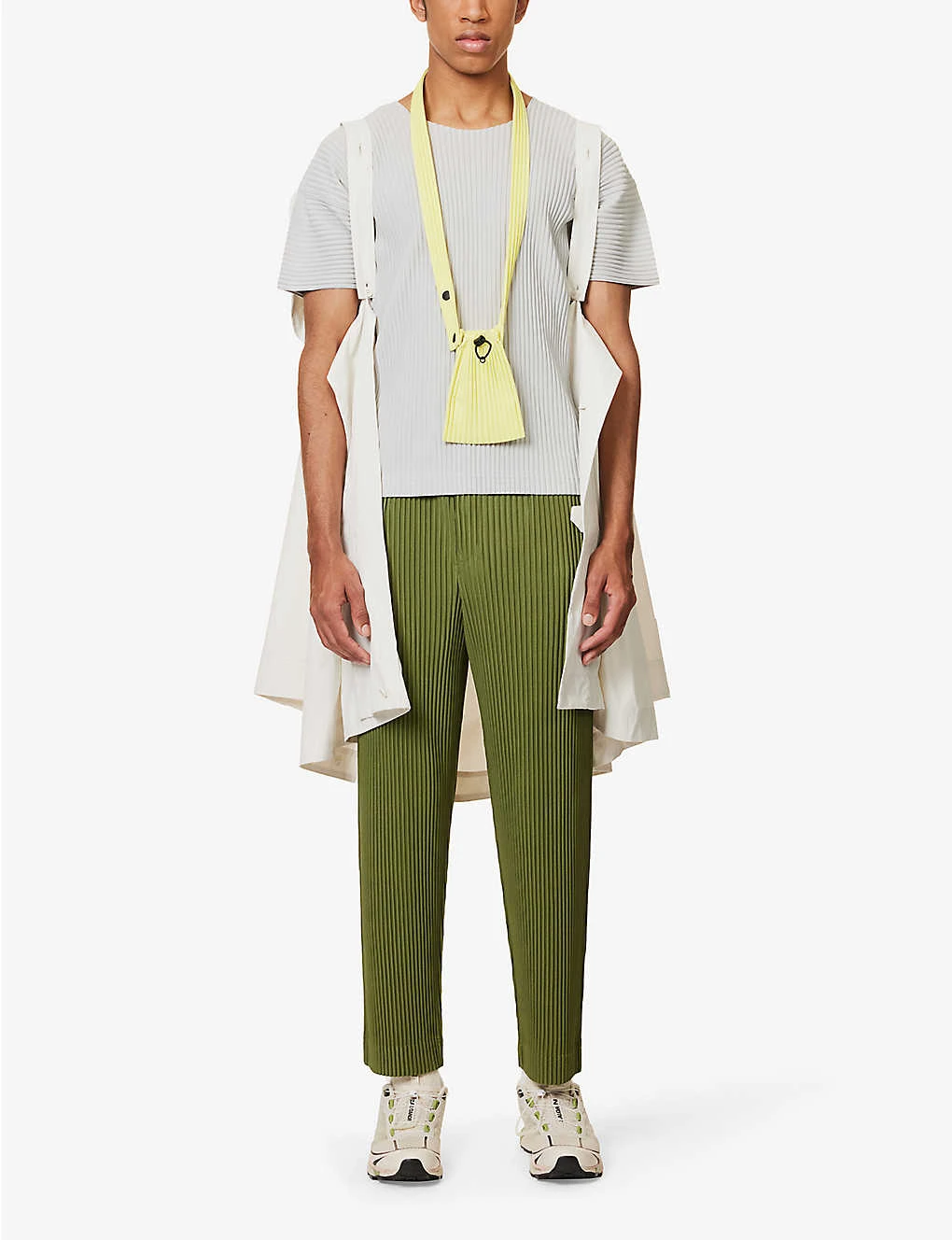 - Regular fit, crewneck, dropped shoulders, short sleeves, all-over pleated texture