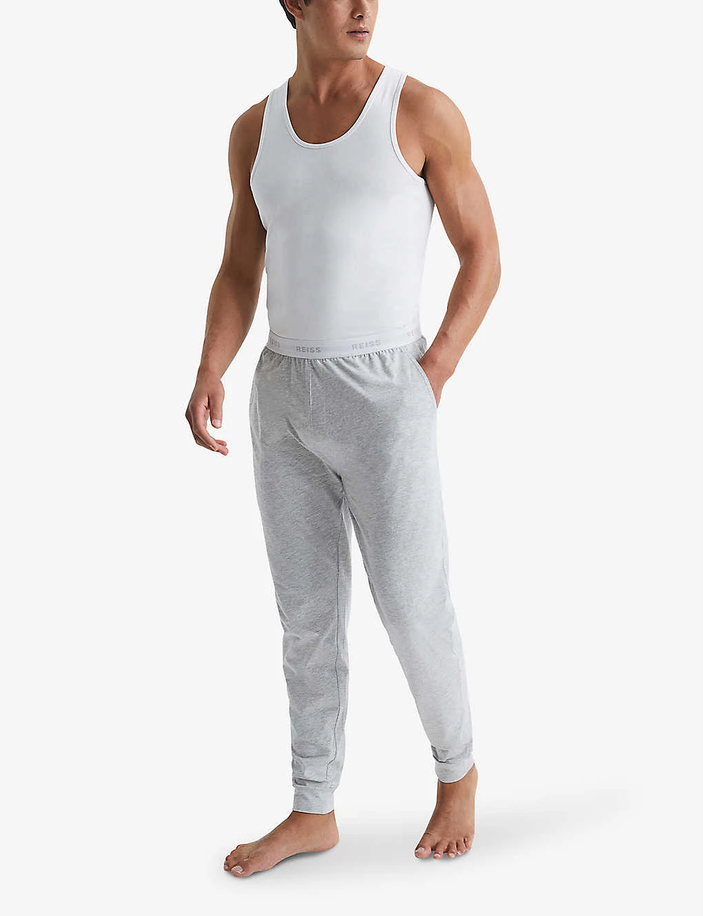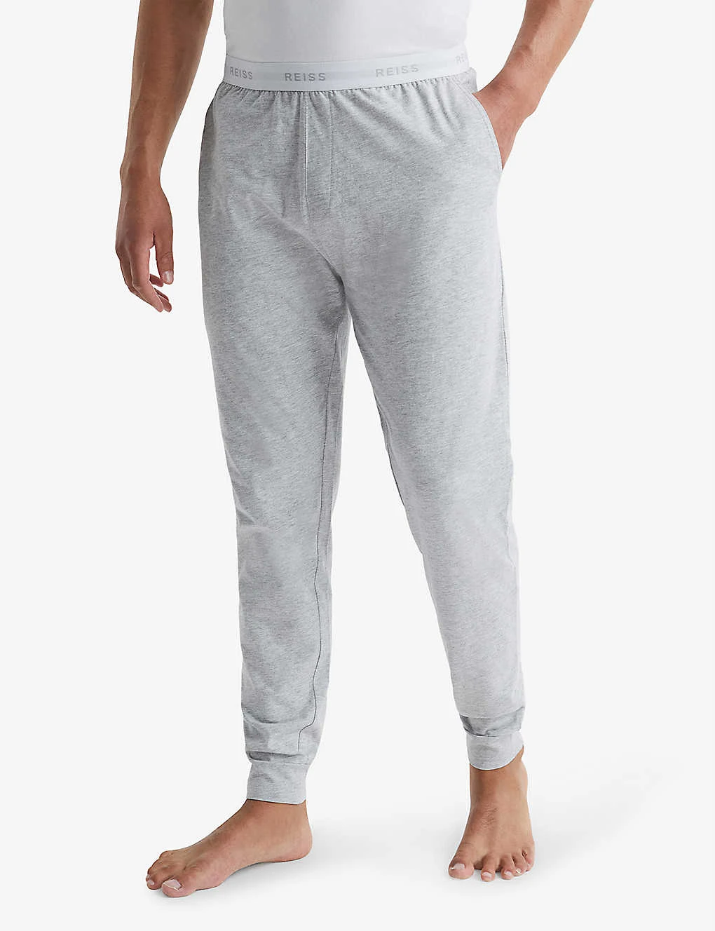 - Slim-fit, tapered-leg, mid-rise, branded elasticated waistband, all-over marl, slip pockets at front, cuffs