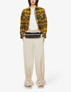 Unisex Check-patterned Wide Balloon-leg Relaxed-fit Trousers