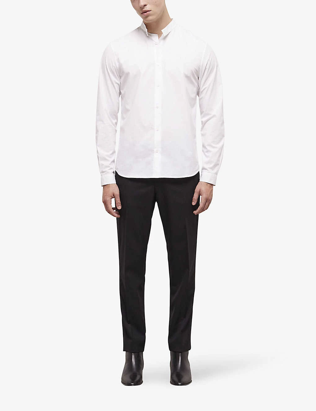 - Slim-fit, high-collar, long sleeves, buttoned cuffs
